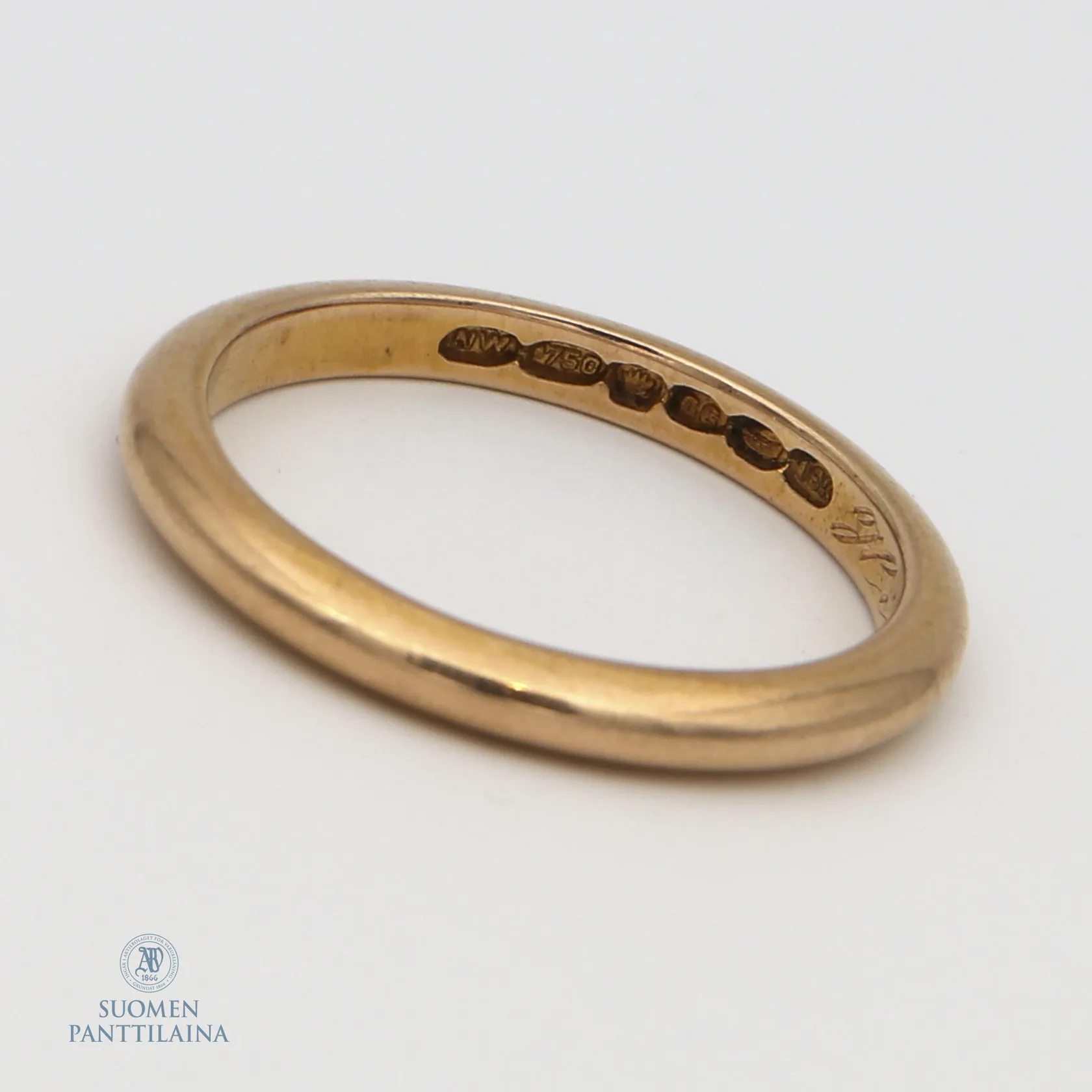 Sileä sormus, koko 21½, valmistettu 1936, Eino Westerback, 750, Paino: 6,4 g.