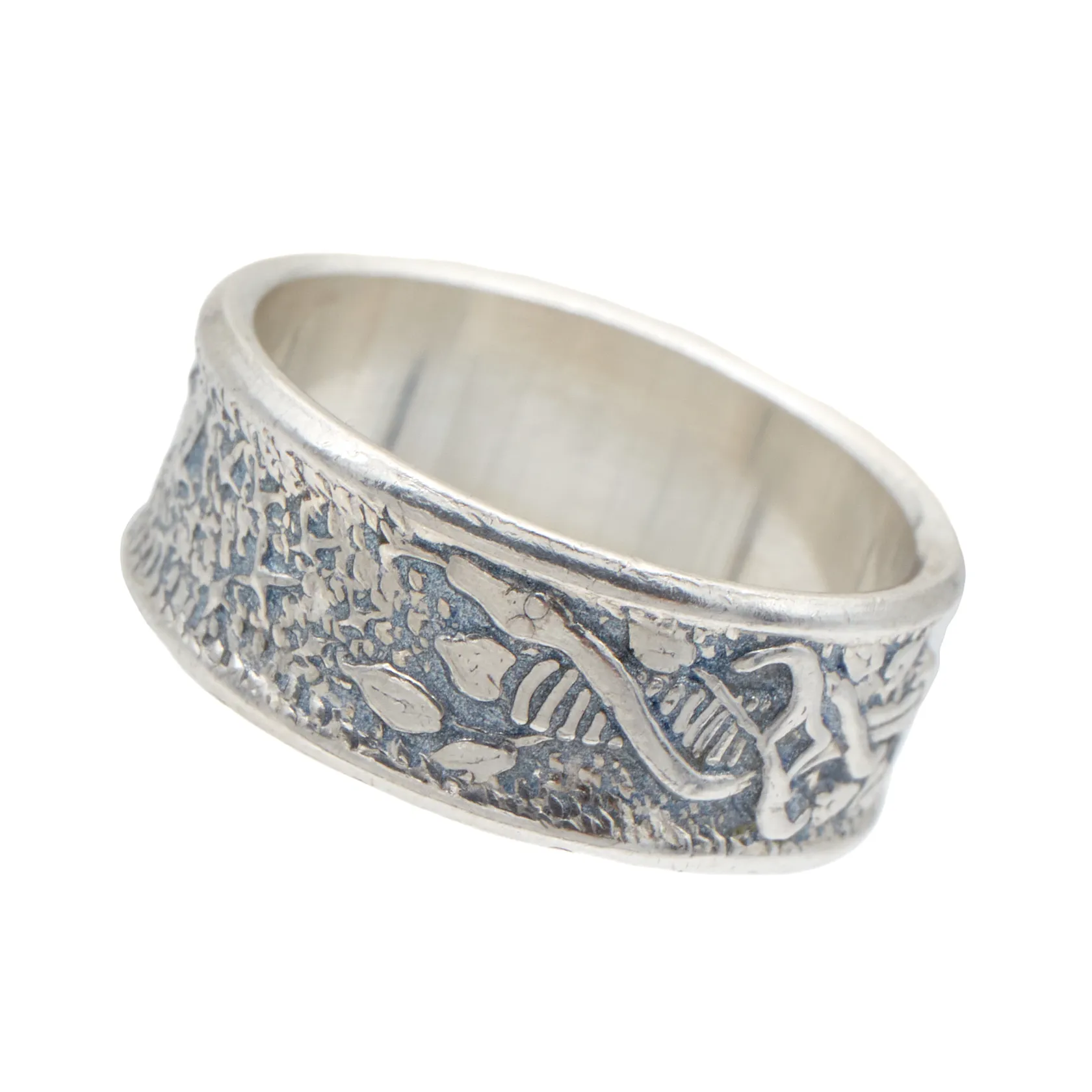Kuvioitu sormus, koko 16, leveys 7mm, 925, Paino: 3,6 g.
