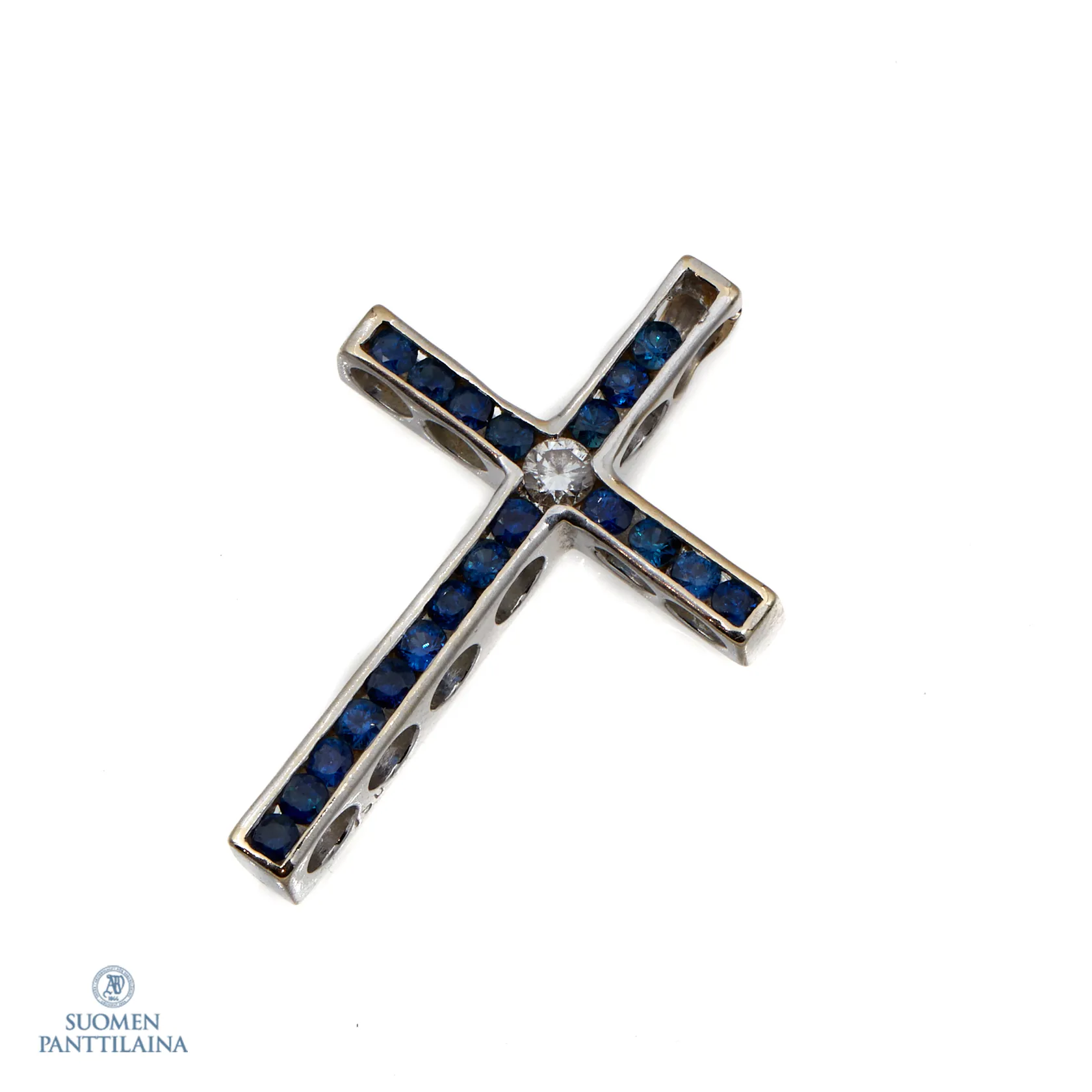 Kiviristiriipus timantilla 1xn.0.08ct, yksi kivi puuttuu, korkeus 27mm, 750br valkokulta, Paino: 3,5 g.