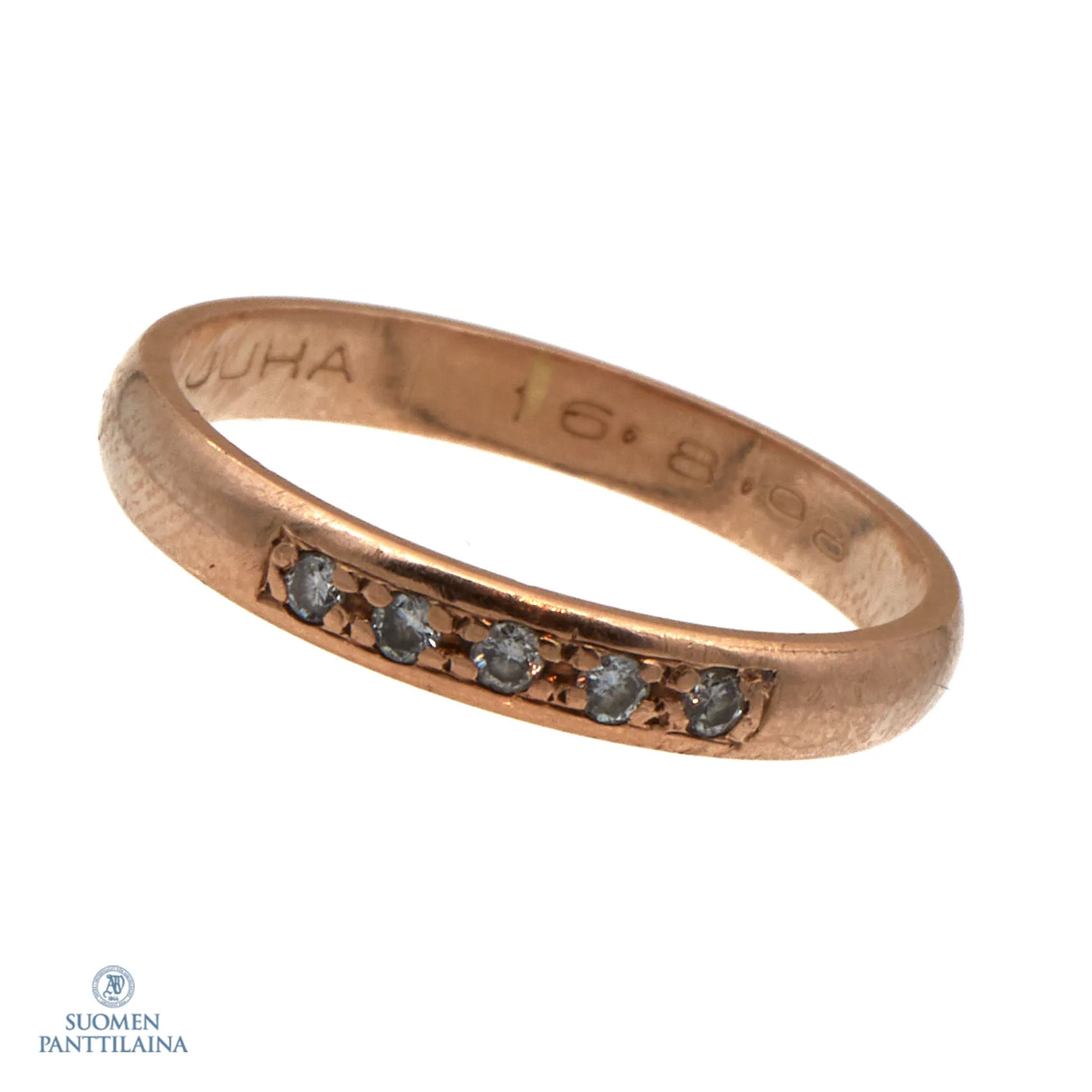 Timanttisormus 5xn.0.02ct, kaiverrettu, koko 16¾, 585, Paino: 1,8 g.