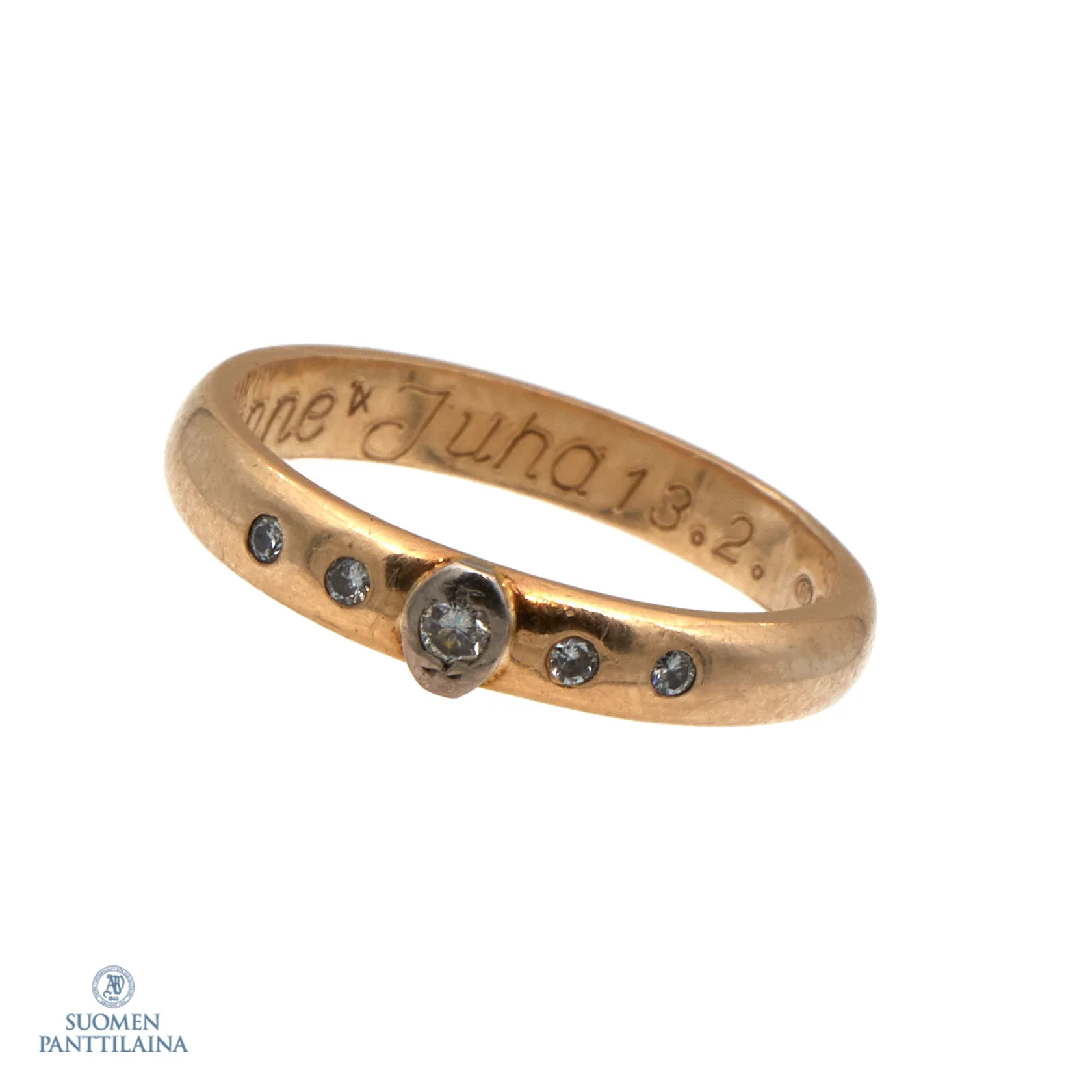 Timanttisormus 1xn.0.03ct 4xn.0.01ct, kaiverrettu, koko 16½, 585, Paino: 2,5 g.