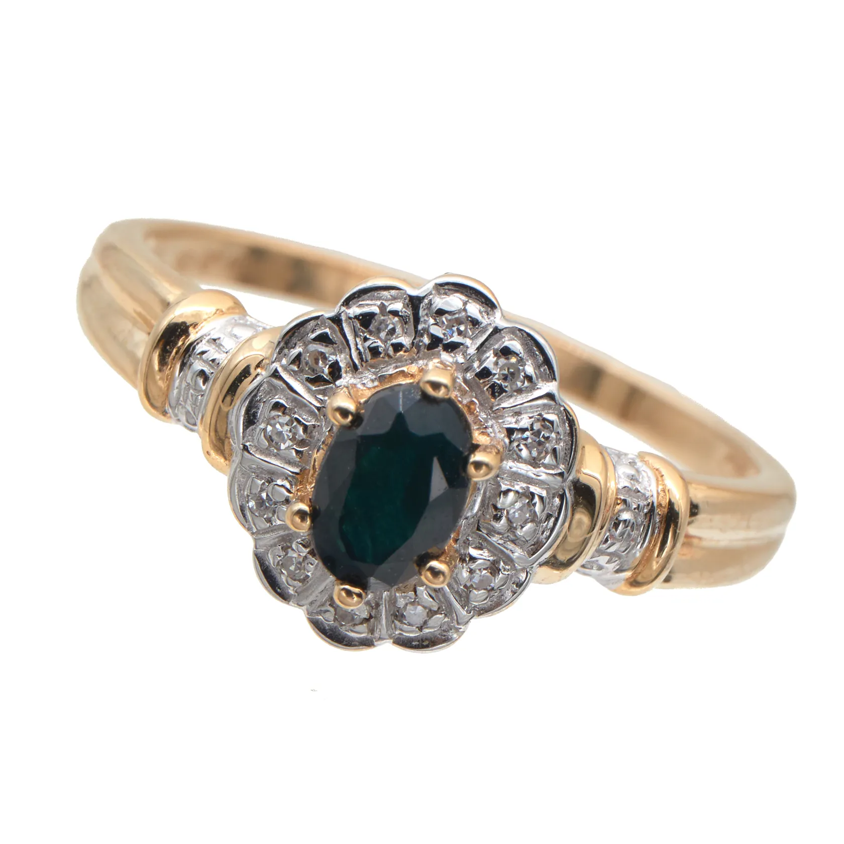 Kivisormus timanteilla 12xn.0.01ct, käytön jälkiä, koko 19¾, 585br, Paino: 3,4 g.