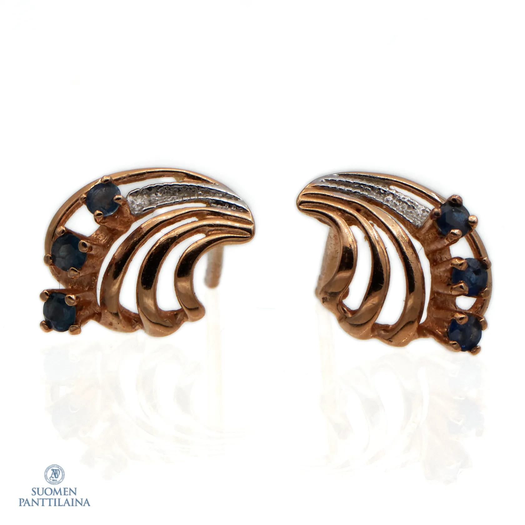 Kivikorvakorut, korkeus 10mm, taustat metallia, 585br, Paino: 1,1 g.