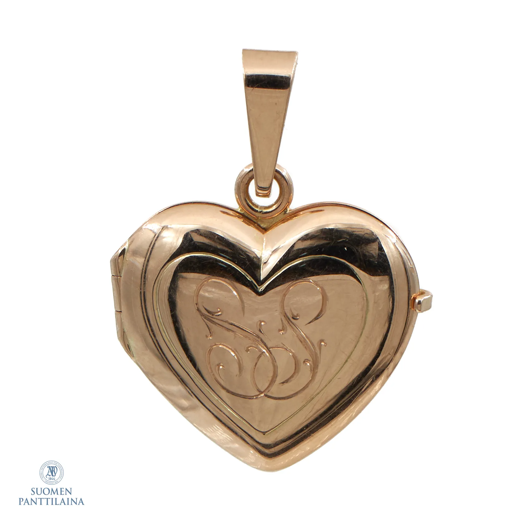 Medaljonki, Sydän, kaiverrettu, korkeus 24mm, 585br, Paino: 2,4 g.