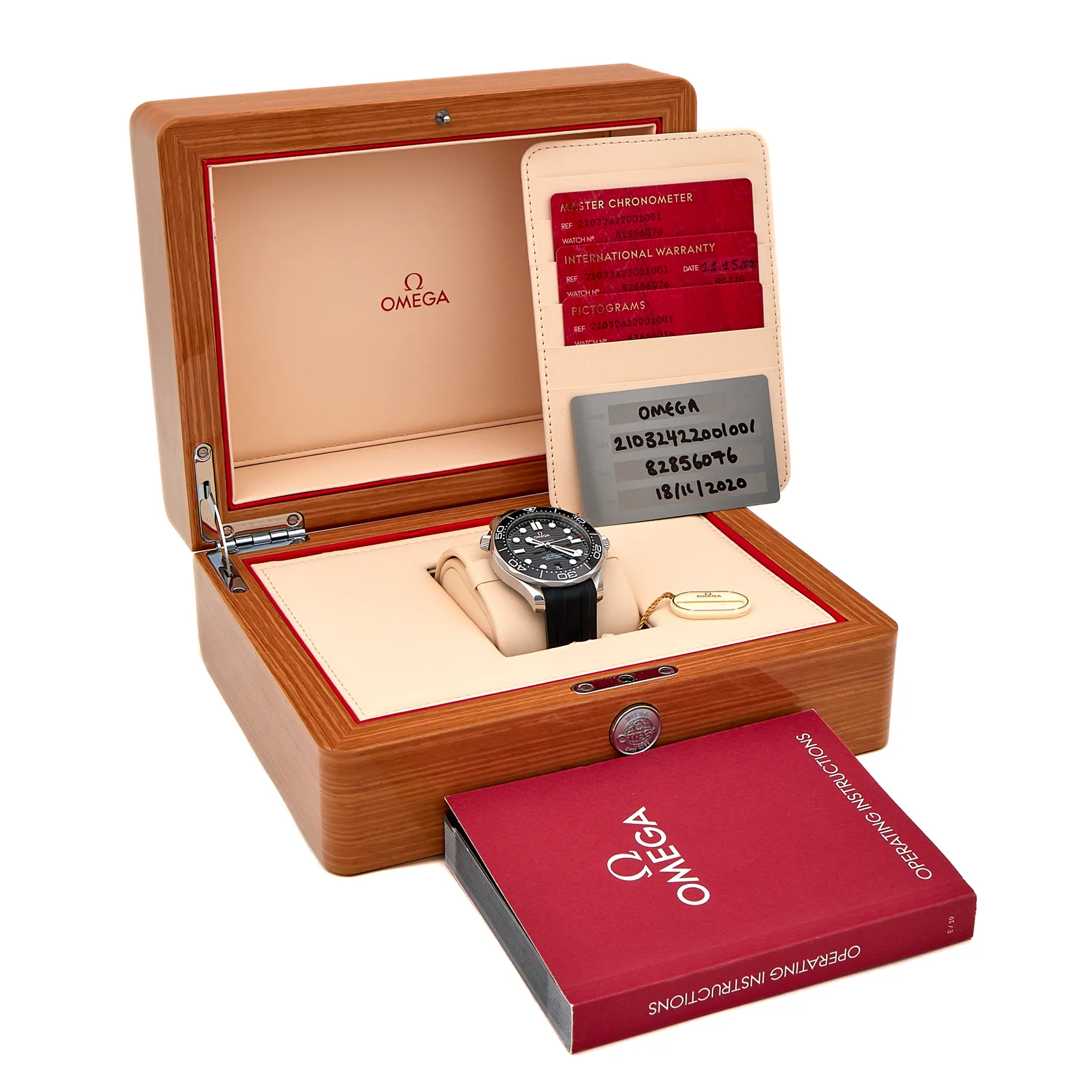 Teräsrannekello, Omega Seamaster Professional Diver 300, automaatti, ref. 210.32.42.20.01.001, sarjanumero 82856076, rungon Ø 42mm, rannekkeen pituus 170-225mm, mukana alkuperäinen laatikko ja takuukortit