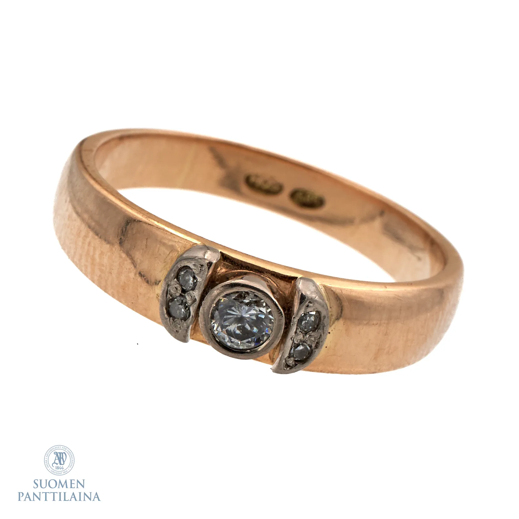 Kivisormus timanteilla 4xn.0.005ct, koko 17, 585br, Paino: 3,8 g.