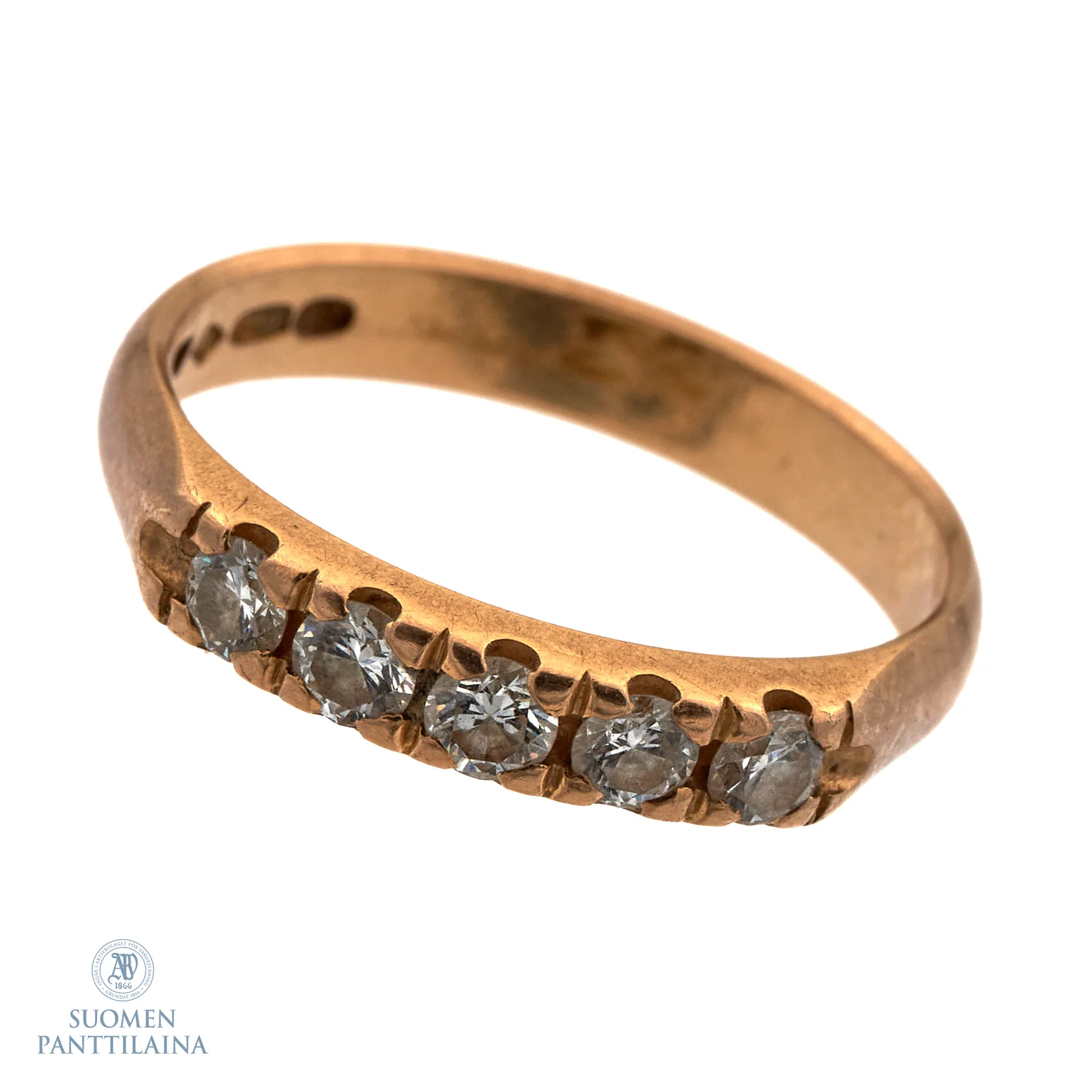 Timanttisormus 5xn.0.08ct, koko 18, tekijänleima AT(Tillander), 750, Paino: 3,8 g.