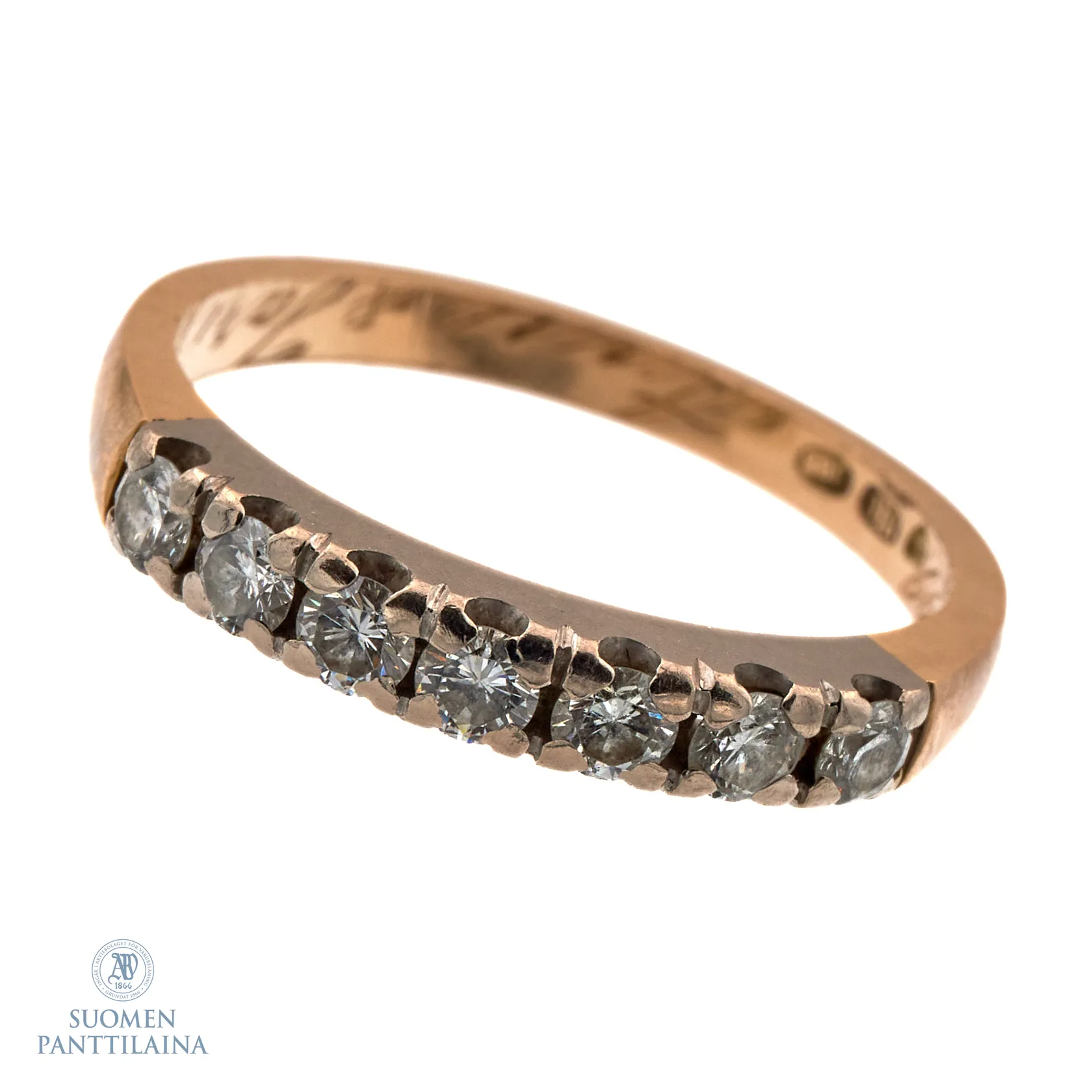 Timanttisormus 7xn.0.05ct, kaiverrettu, koko 16¼, 585 valko- ja keltakulta, Paino: 2,4 g.