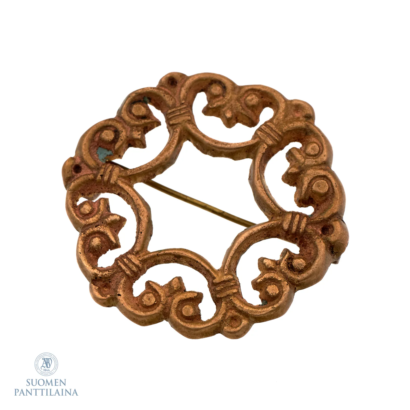 Rintaneula, Suotniemen solki, Kalevala Koru, kiinnitys löystynyt, leveys 42mm, pronssia