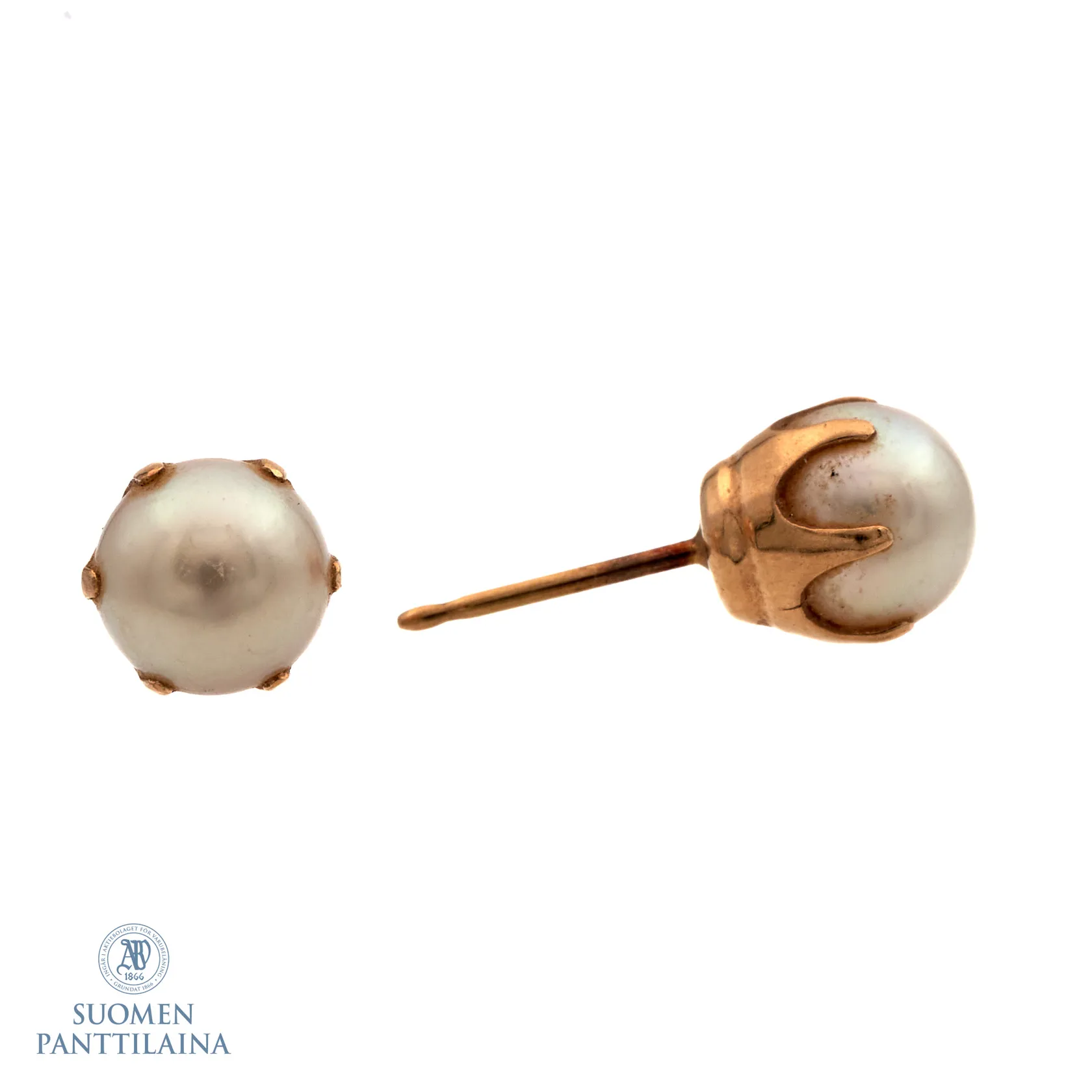 Helmikorvakorut, käytön jälkiä, Ø 7mm, taustat metallia, 585br, Paino: 1,8 g.