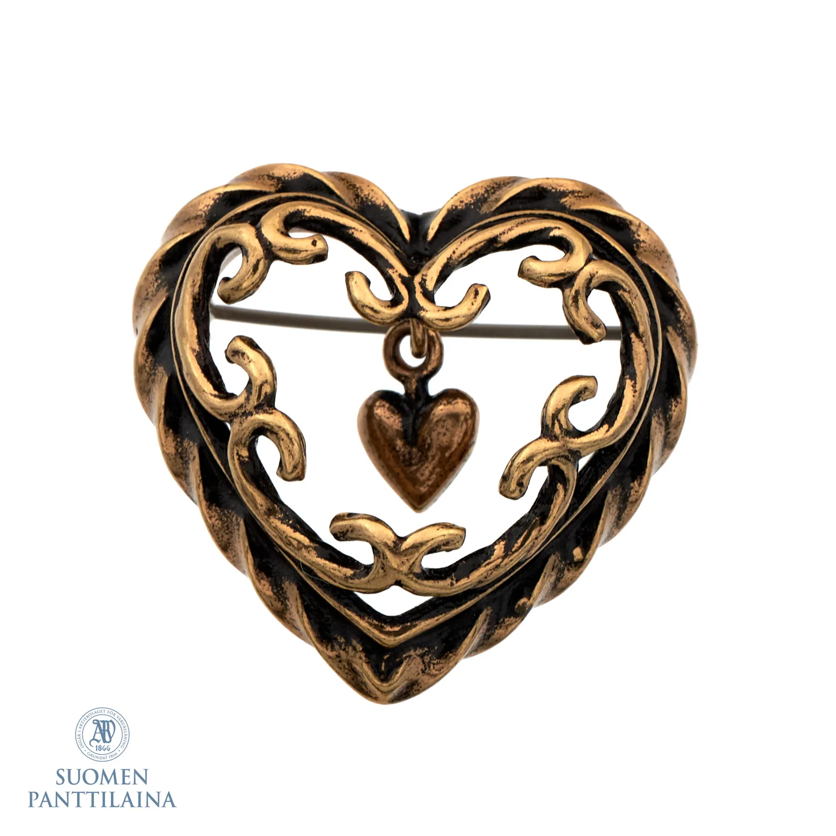 Rintakoru, Talon sydän, Kalevala Koru, korkeus 25mm ja leveys 25mm, pronssia.