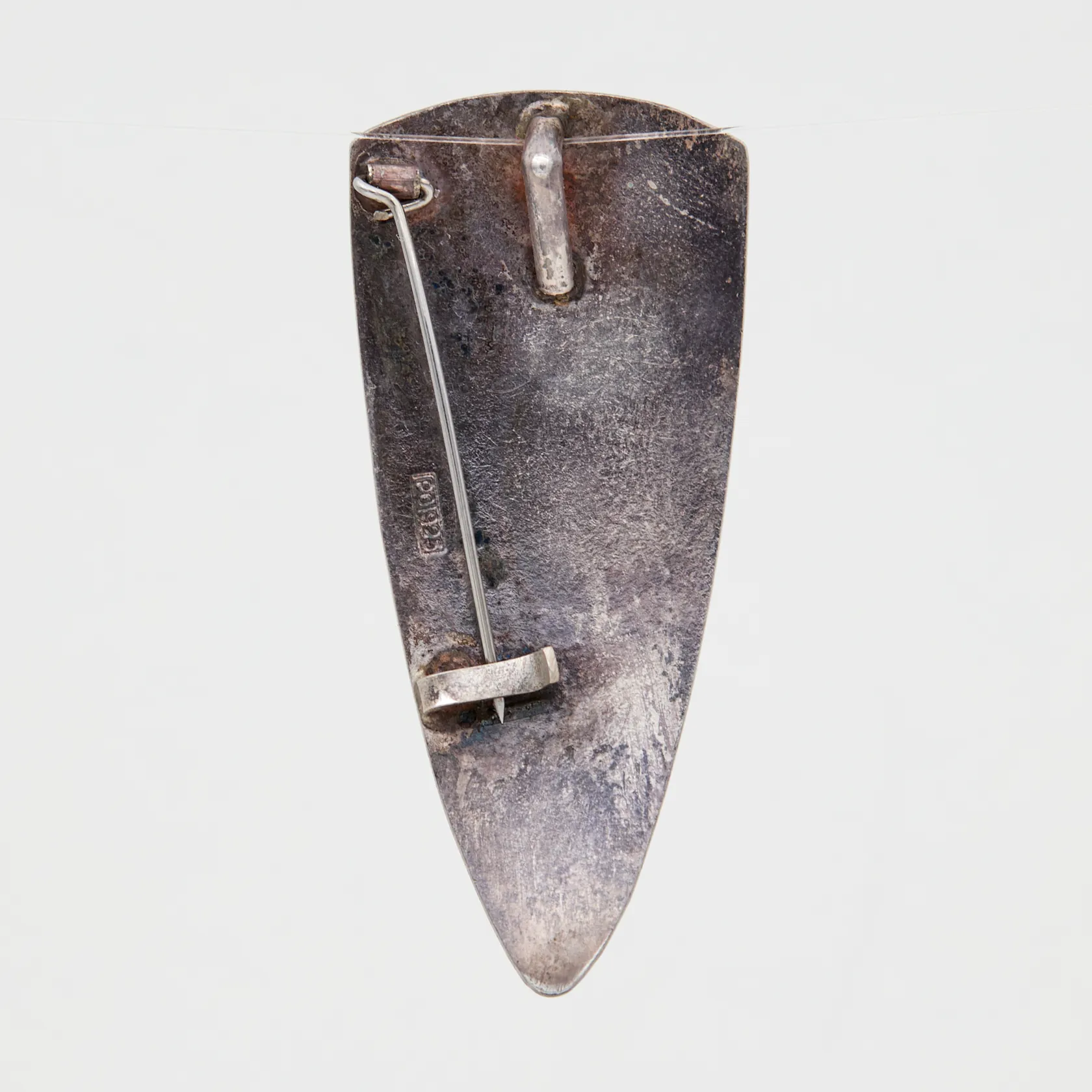 Rintakoru riipuslenkillä ja emaloinnilla, design Pekka Piekäinen, pituus 51mm, leveys 22mm, nimileima Platinoro Oy, 925br, Paino: 9,8 g.
