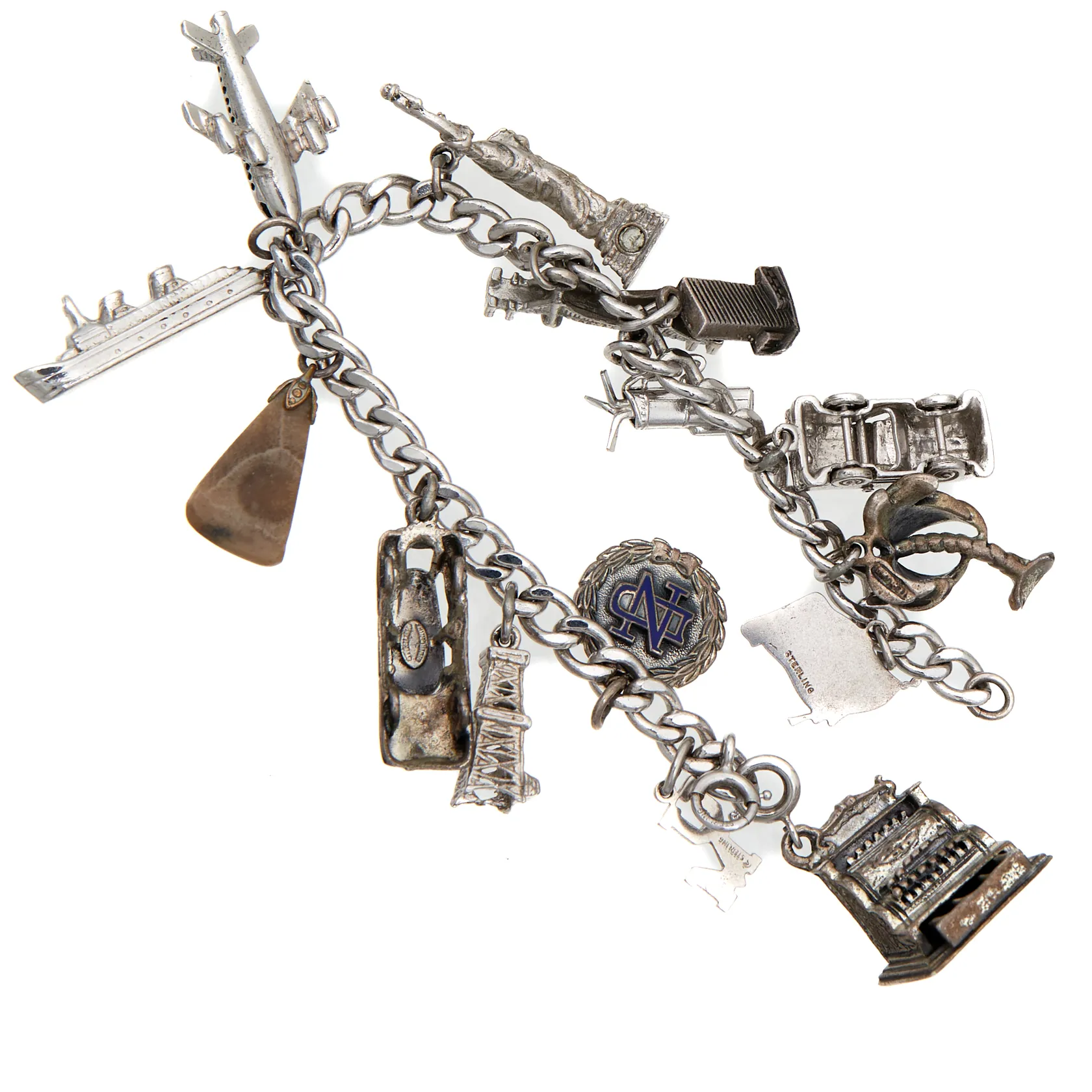 Panssariranneketju maskoteilla, ketju ja osa maskoteista metallia, pituus 178mm, ketjun leveys 5mm, 925br, Paino: 57,7 g.