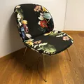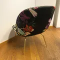 Nojatuoli GUBI, Beetle, verhoilukangas Dedar About Flowers (58% juuttikangasta, 42% pellavaa), väri 4 volcano, messinkijalat, korkeus 84cm, käyttökulumaa. Ei lähetetä.