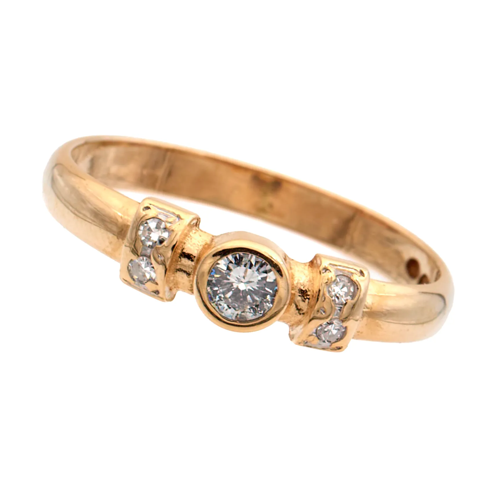 Timanttisormus 1xn.0.12ct 4xn.0.01ct (8/8-hiontaisia, yhdessä kivessä lohkeama), koko 17¾, 585, Paino: 2,3 g.