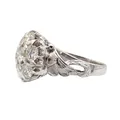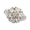 Timanttisormus 7xn.0.45-0.50ct, yhdessä timantissa lohkeama reunuksessa, osassa timanteista istutus löystynyt, koko 18, 750 valkokulta, Paino: 8 g.