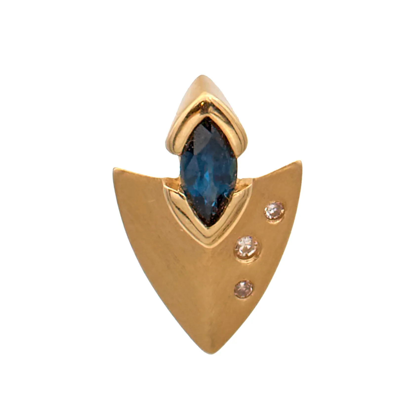 Sinisafiiri-riipus timanteilla 2xn.0.005ct 1xn.0.01ct, korkeus 15mm, leveys 10mm, 585br, Paino: 1,6 g.