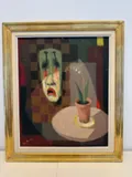 Taulu, ölyvärimaalaus, "Klovni ja kielo", Pelle Åberg, signeerattu, päivätty versio 1955, koko 45X38cm.