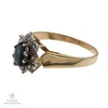 Timanttisormus 3xn.0.05ct 1xn.0.04ct 2xn.0.02ct, 4xn.0.005ct, kaiverrettu, koko 18½, 585, Paino: 3,1 g.