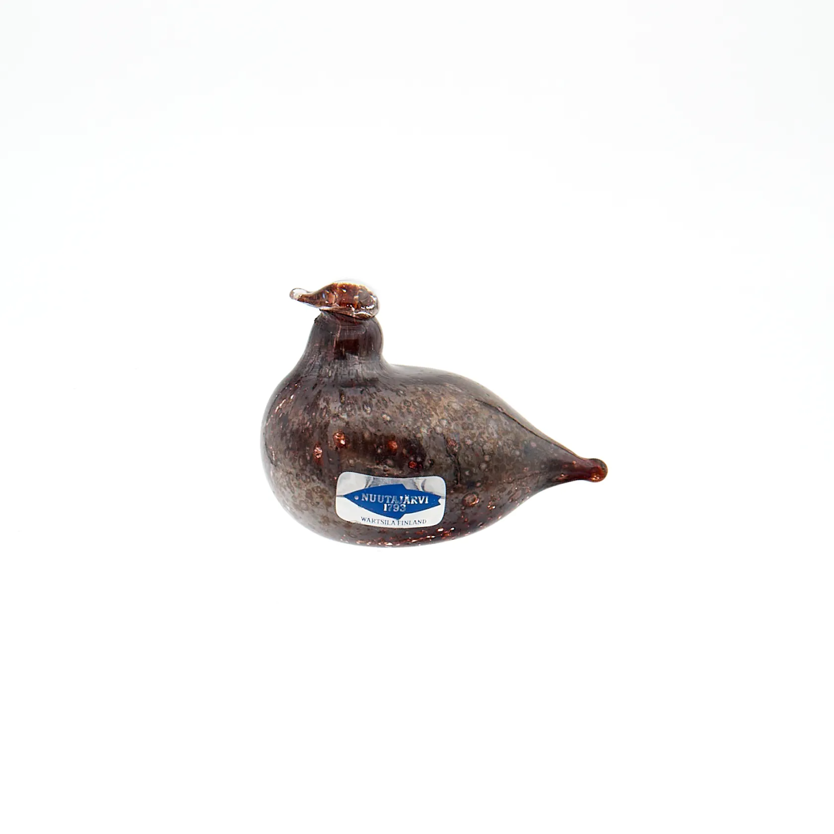 Lasilintu Oiva Toikka, Hippiäinen, 4,5x6,5cm, signeeraus O. Toikka Nuutajärvi, ruskea.