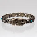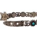 Kivirannekoru Gucci, Double G Flower Bracelet, pituus 170mm, leveys 10mm, cabochon-hiottuja turkooseja topaaseja sekä helmiäishartseja, Made in Italy, numerointi 17, 925br, Paino: 33,4 g.