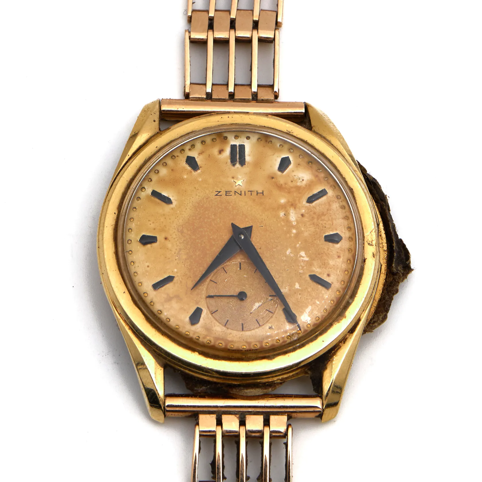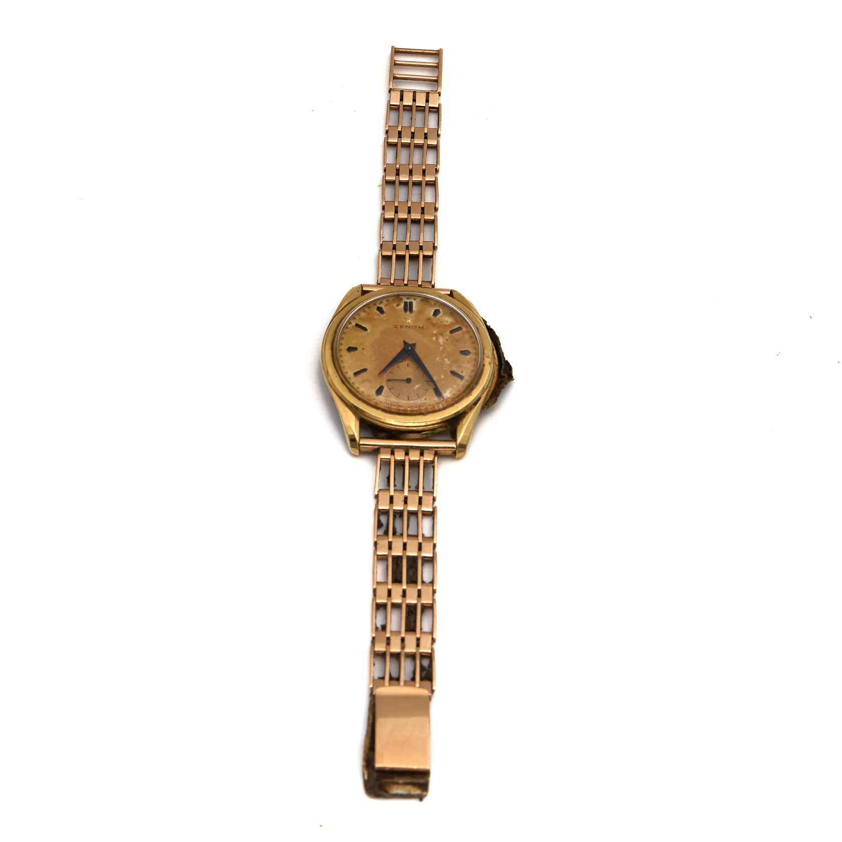 Viallinen kultarannekello Zenith, mekaaninen, taulun Ø 34,5mm, rannekkeen pituus 185mm, runko 750br, ranneke 585,