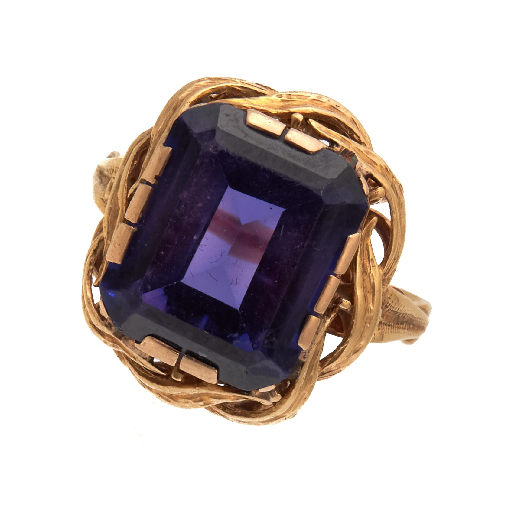 Ametistisormus, kivessä kulumaa, koko 19, Leimaamaton, 750br, Paino: 7,8 g.