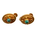 Turkoosi-korvakorut, korkeus 17mm, leveys 13mm, 1970, Helsinki, 585br, Paino: 4,7 g.