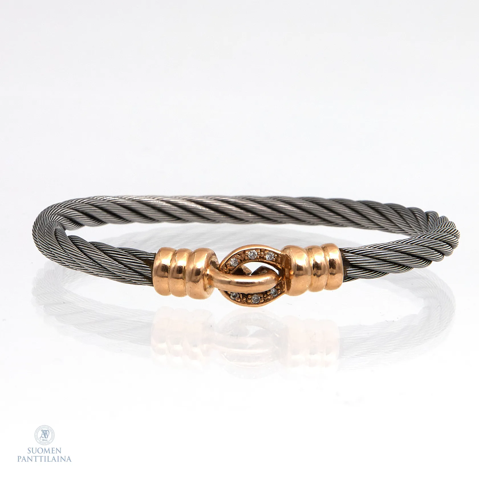 Timanttirannekoru 6xn.0.01ct, Ø 65mm, ranneke metallia, lukko 585, Paino: 23 g.