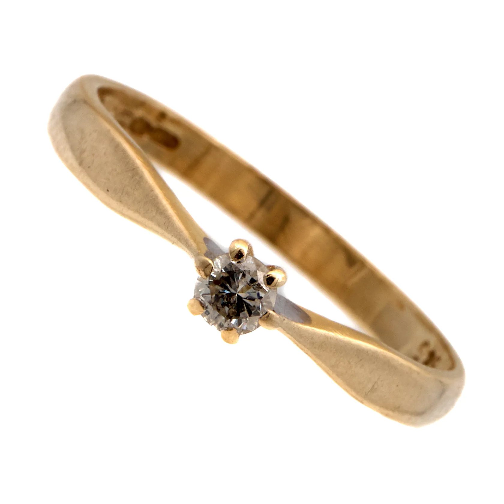 Timanttisormus 1xn.0.10ct, koko 18¾, 585br kelta- ja valkokulta, Paino: 2,1 g.