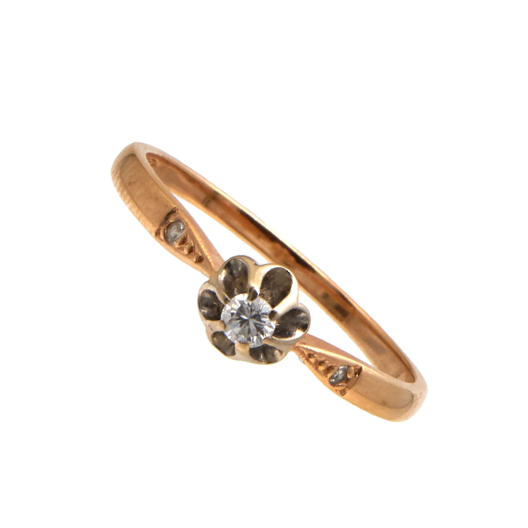 Timanttisormus 1xn.0.07ct 2xn.0.01ct, koko 17, 750 kelta- ja valkokulta, Paino: 1,4 g.
