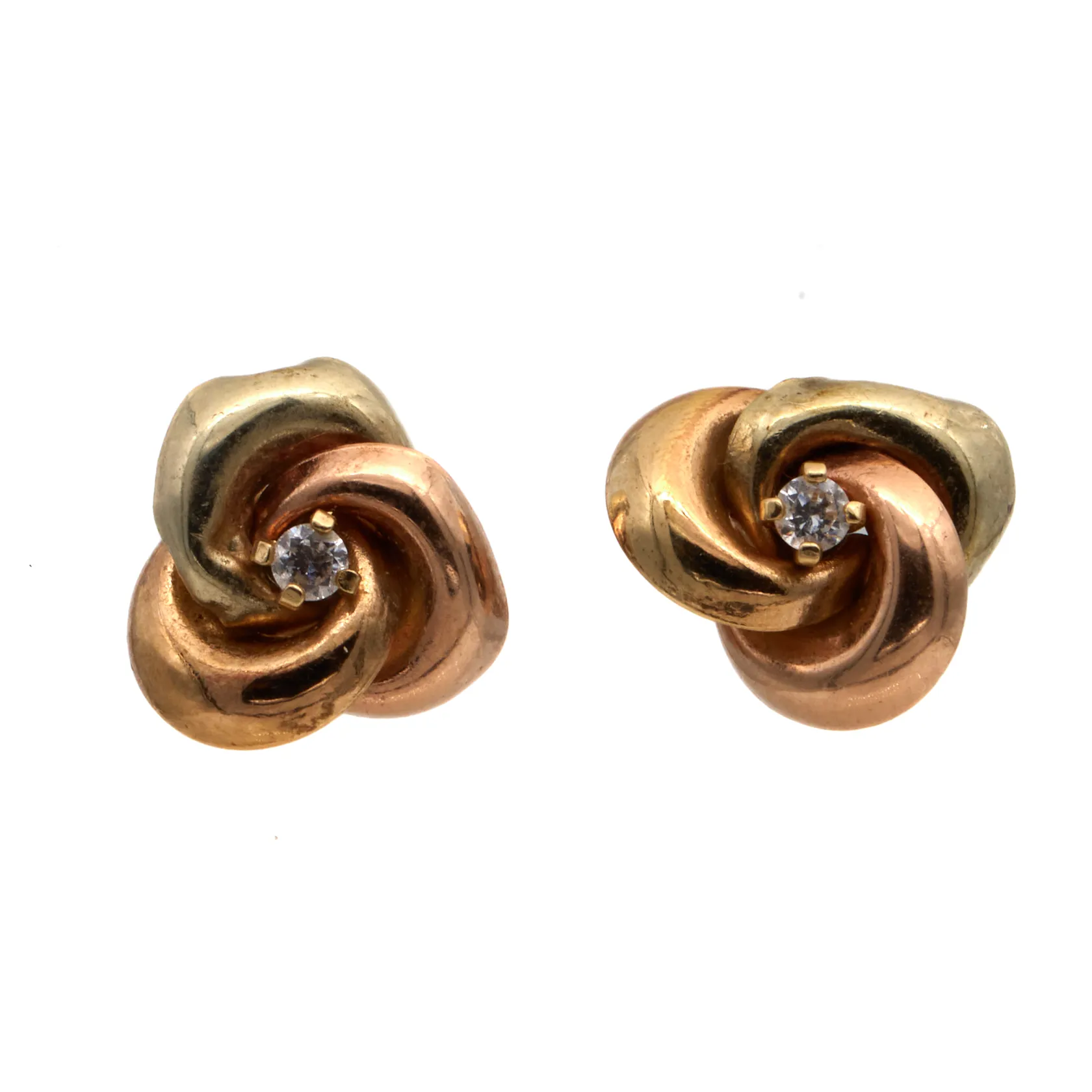 Kivikorvakorut, Ø 9mm, reunoissa painaumia, 585br, Paino: 1 g.